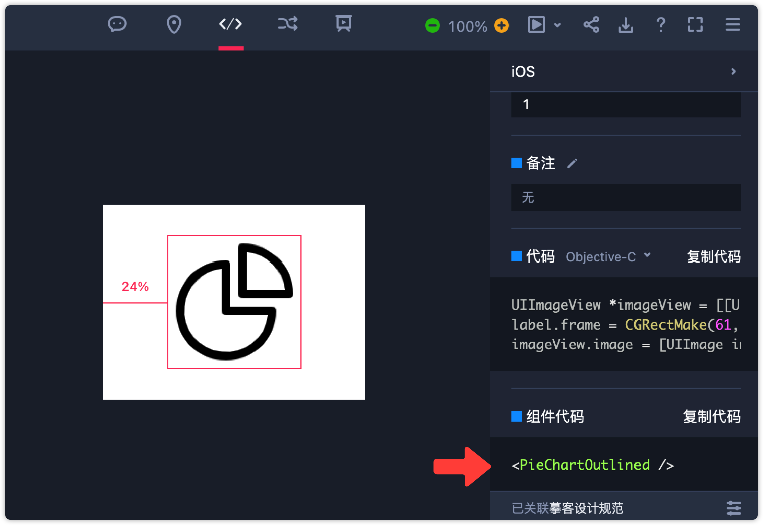 摹客设计系统是国内唯一支持【开发变量名】同步显示的产品。为了准确显示开发参数和变量信息,需要利用摹客的【设计规范关联】功能。