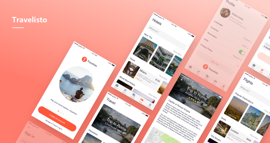在摹客中制作的交互原型 — Travelisto,演示如下: