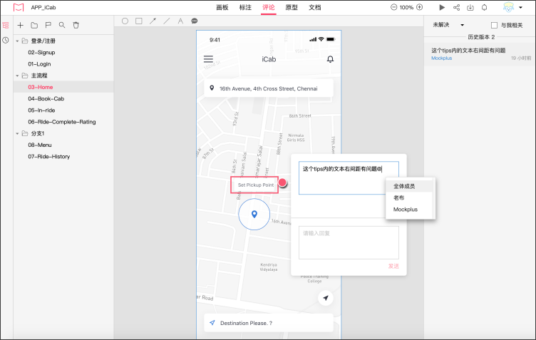 项目协作时成员添加的评论,所有成员都可查看与回复,同时支持@项目成员查看评论: