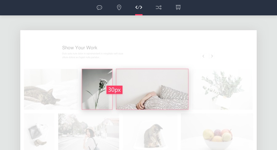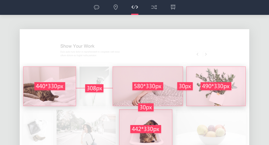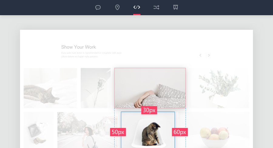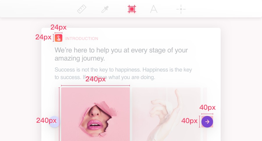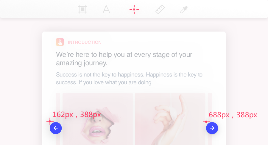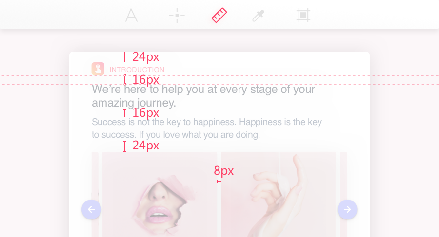 可对页面任意元素左键绘制直线,准确获取该元素的尺寸信息,比如文字图层上的文字间距等,最大程度地保证开发还原度。