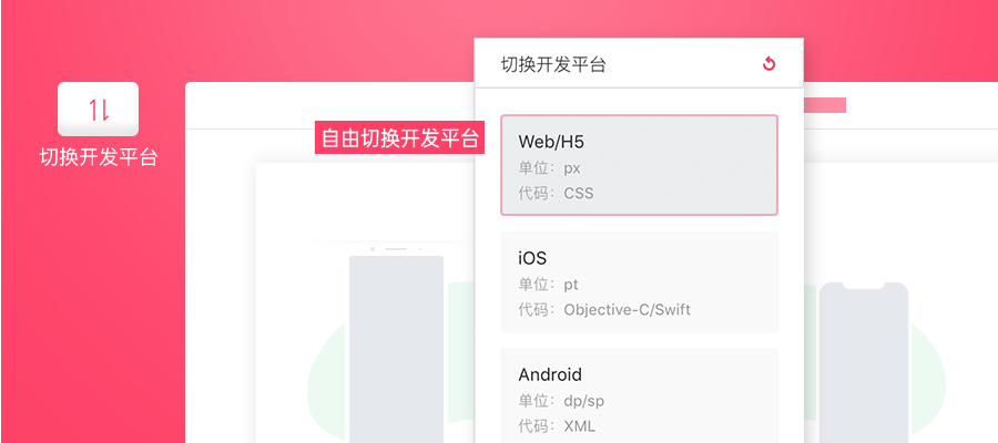 不同平台单位(如iOS的pt,Android的dp,Web的rem)自由切换,智能适配不同设备,还可自定义设备。