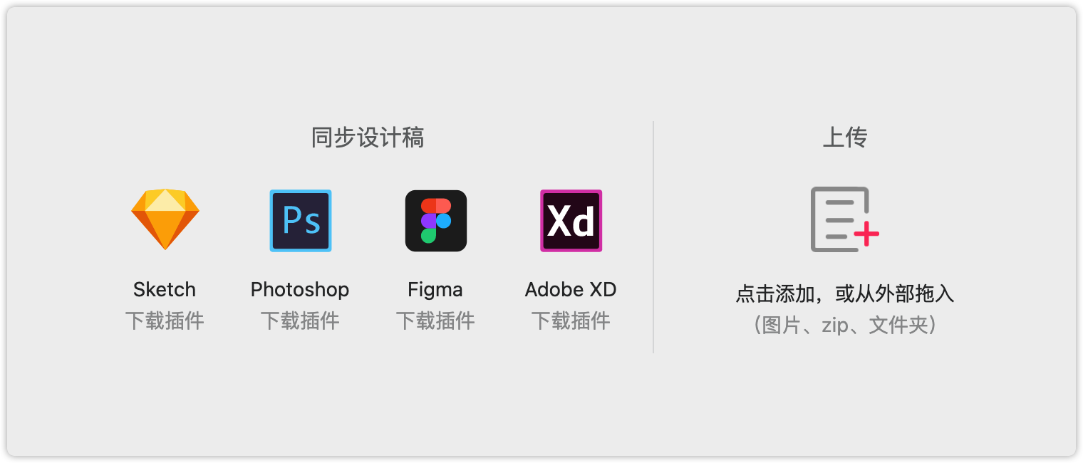 1. 先到官网下载对应插件(Sketch、PS、Figma、Adobe XD、图片等),上传到项目中: