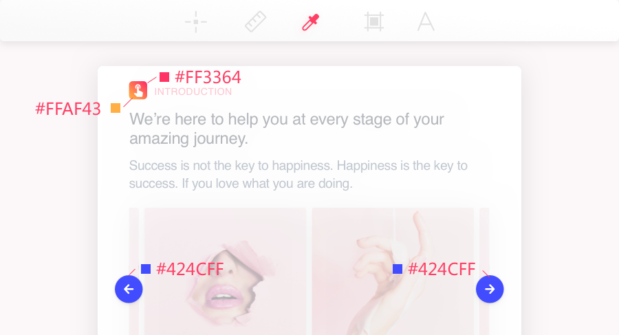 单击即可提取设计稿任意元素的色值信息,包括设计稿切图上任意元素的色值信息也可标记。