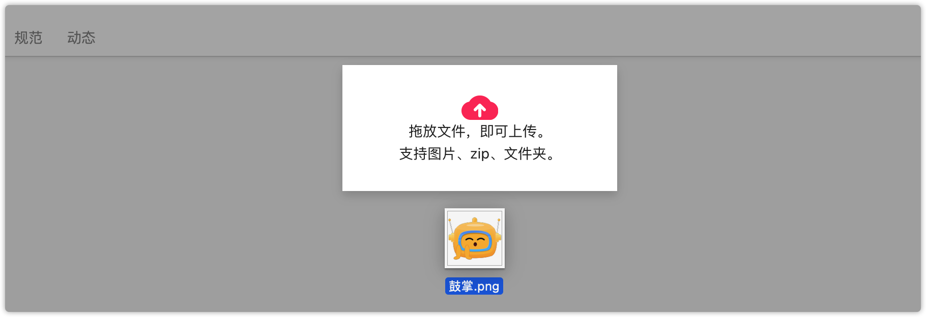 将zip压缩文件直接拖拽至摹客项目内,即可完成压缩文件中所有图片的上传。文件按照目录结构自动解析。