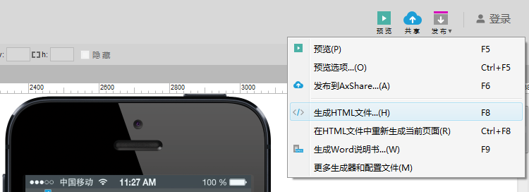 在Axure中发布生成HTML文件。
