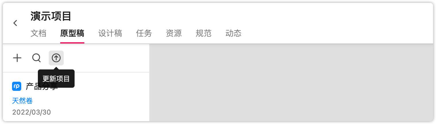 在摹客中点击项目树上方的“更新项目”按钮,将最新更新的Axure Zip演示包拖入即可。