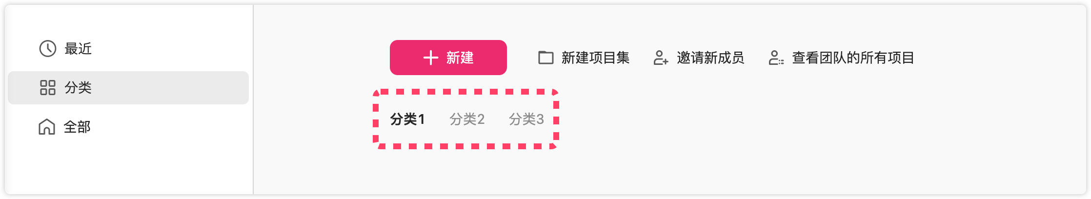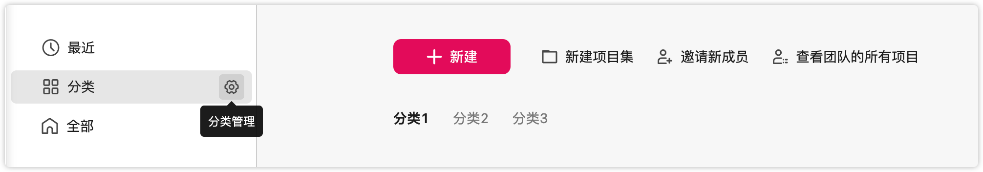 在项目首页左侧的列表上,可以看到一个名为“分类”的便捷选项。此分类下会展示你所有的自定义分类项目。