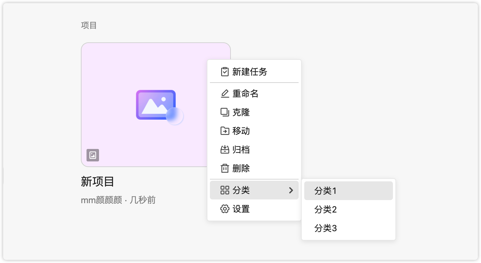 点击封面右上角的“更多”图标,选择“分类”,对该项目进行分类。
