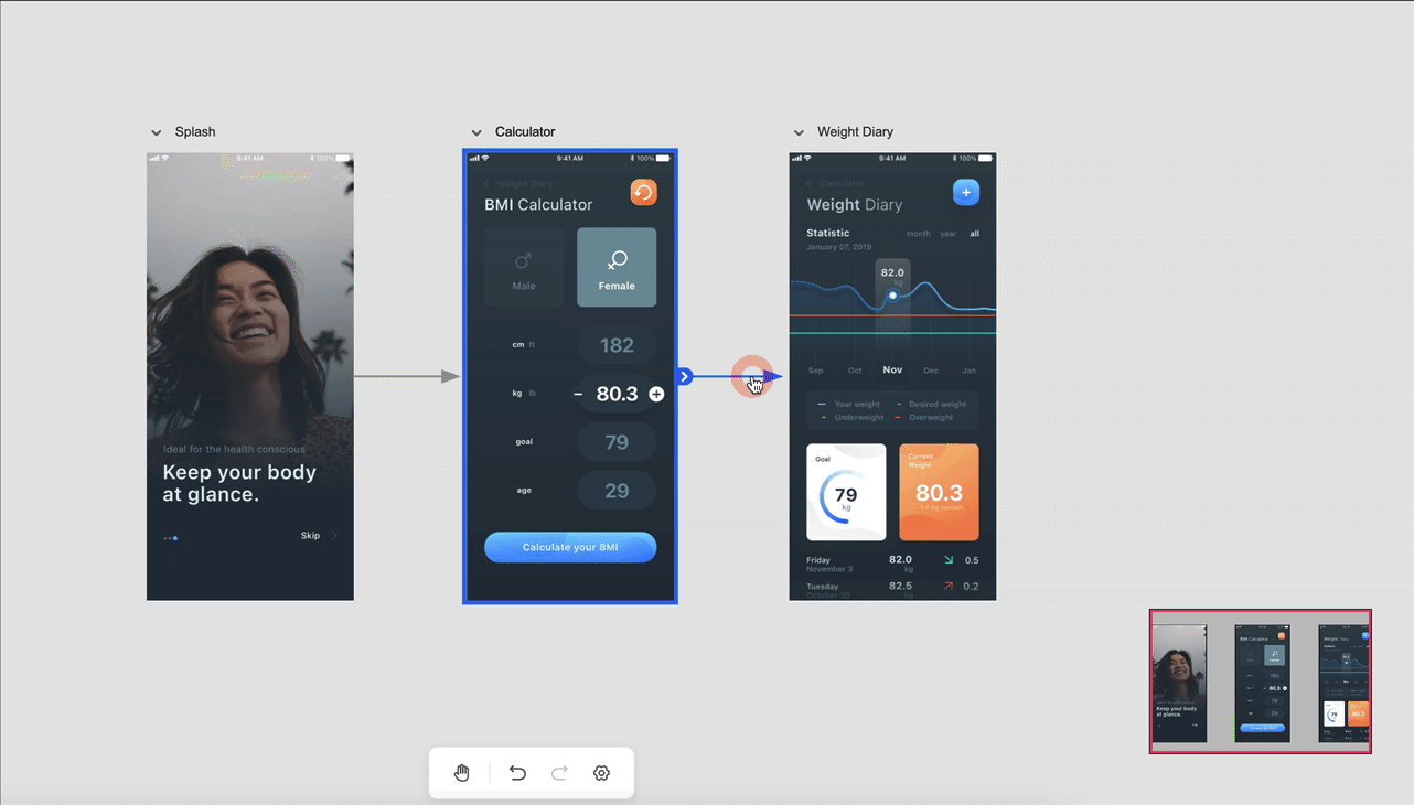 选中页面,拖拽左侧箭头到另一张页面上即可建立逻辑线。双击逻辑线可添加描述。