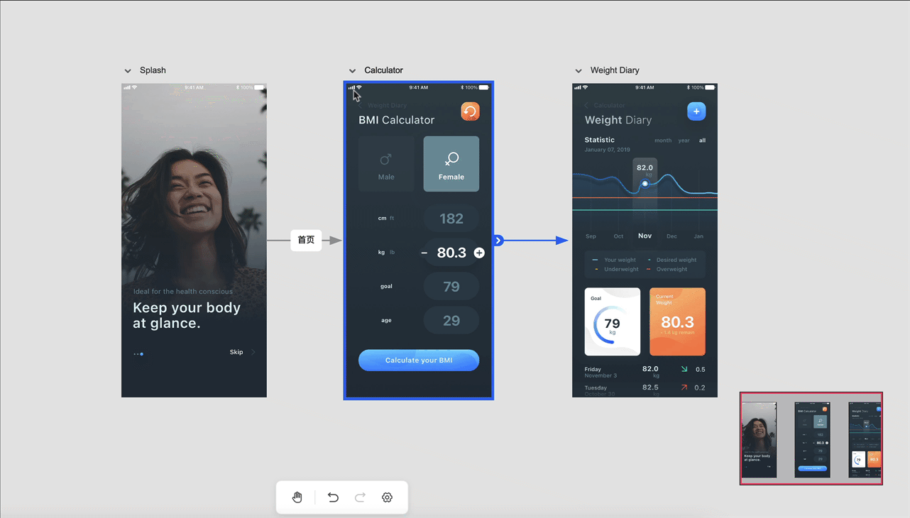 点击页面左上方箭头图标展开页面标记面板,依次选择图标和颜色进行组合。添加后,页面标记会显示在画板和项目树中。