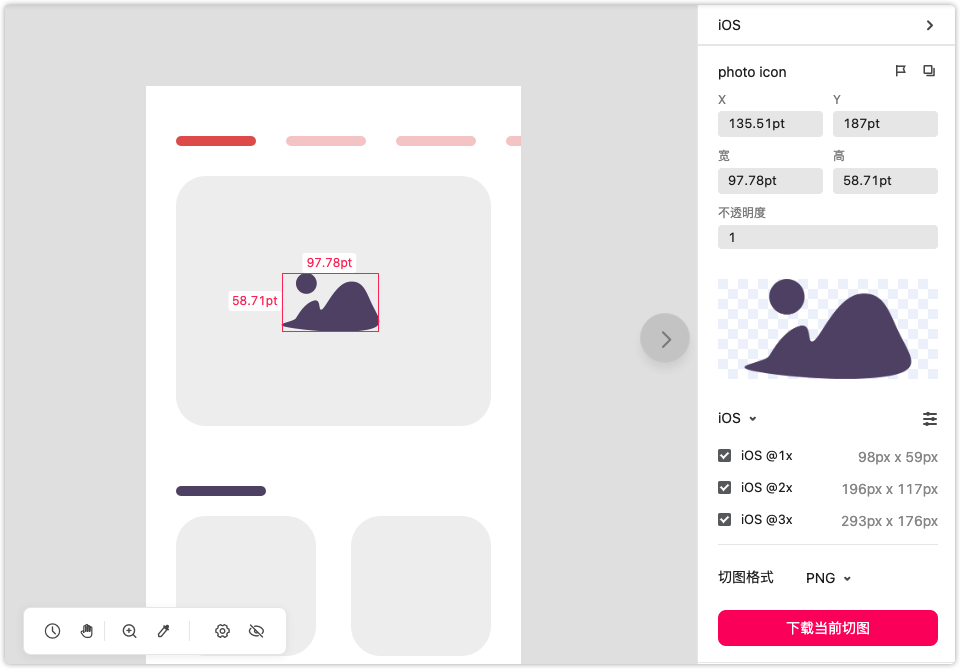 开发模式中,只需选中图层,在属性面板右下角,就可以自动生成CSS、Android、Objective-C、Swift的代码,一键复制即可投入使用。