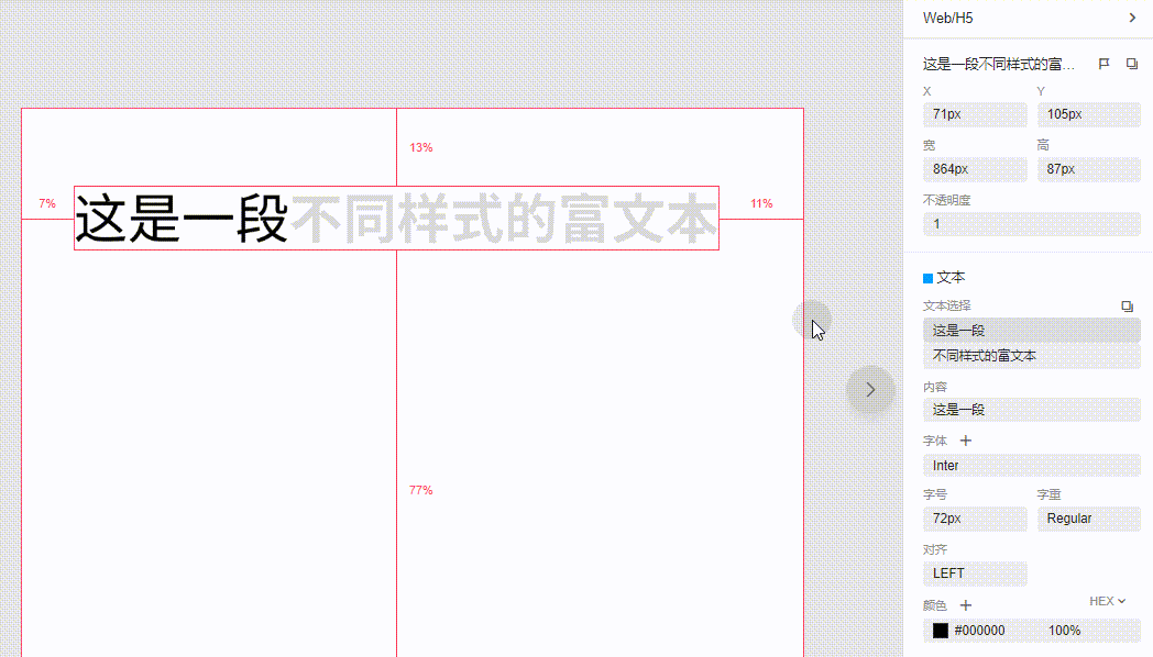 当设计稿中存在富文本时,如何查看不同样式的属性?