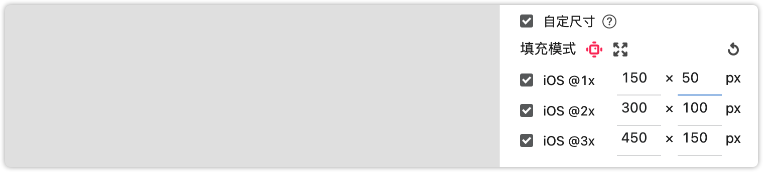 勾选自定尺寸后,在每种分辨率类型后输入宽*高的数值,即可设置自定义尺寸。不同分辨率的数值按照其倍率关系自动关联。