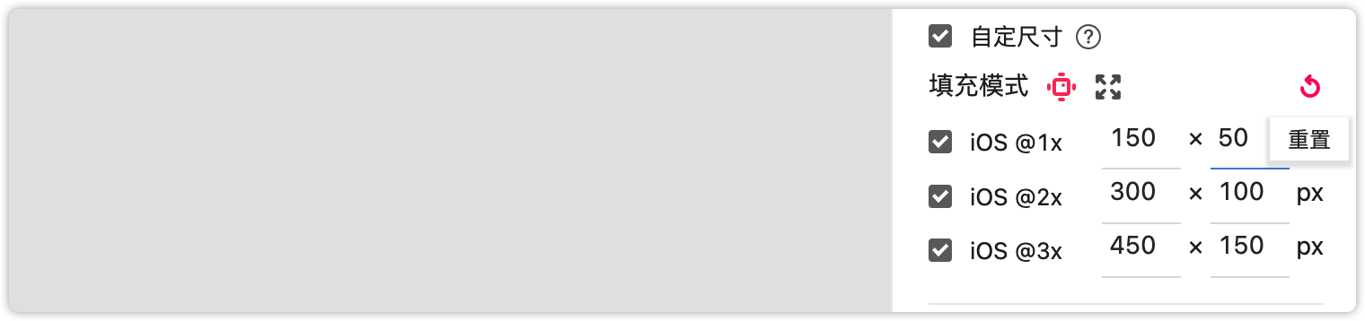 下载切图时,支持用户自定义切图尺寸,可按照统一的规格下载。
