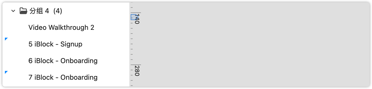 在原型模式下,项目树上左侧的蓝色三角,代表该页面已经做过了交互。