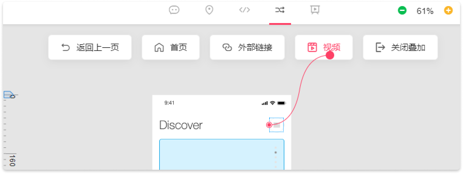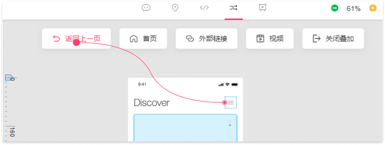在设置链接时将连接线拖动到“返回上一页”,便可设置返回链接。返回链接即指无论你从哪个页面跳转到该页面,点击返回链接都会原路径返回。
