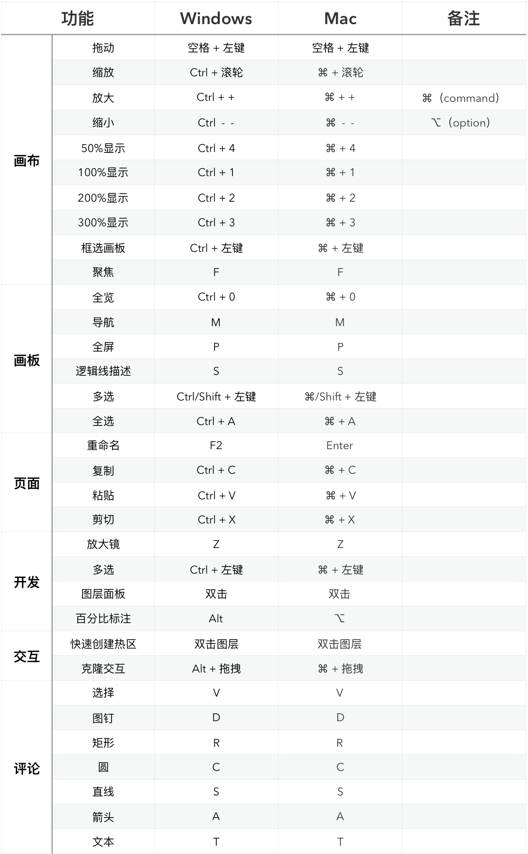 摹客中,可以通过快捷键进行快捷操作。具体的快捷键如下图所示: