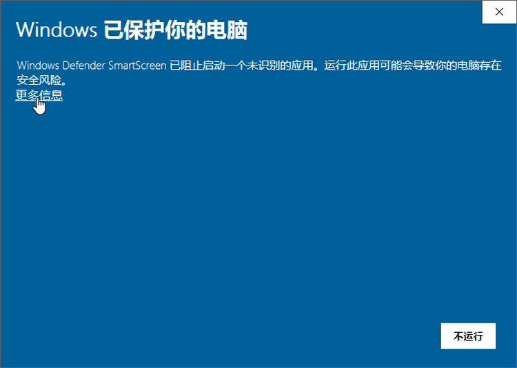 出现这种情况请点击“更多信息” > “仍要运行”进行安装。