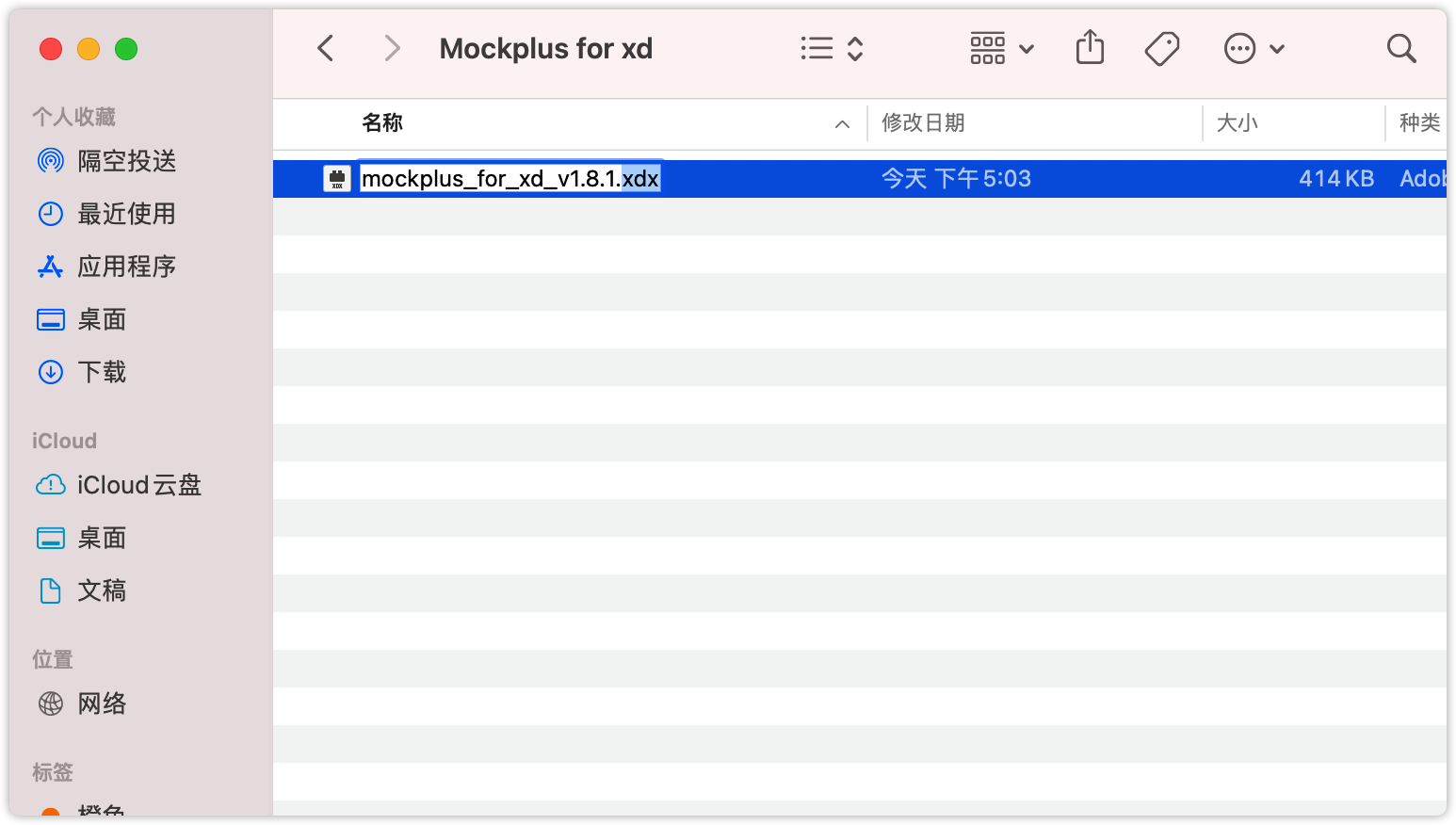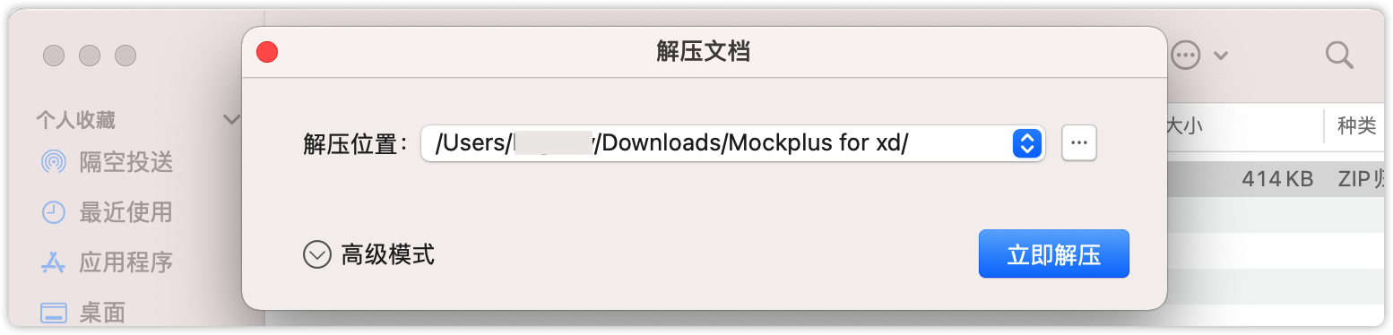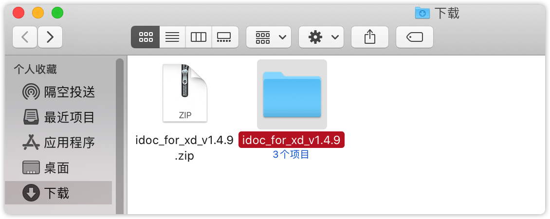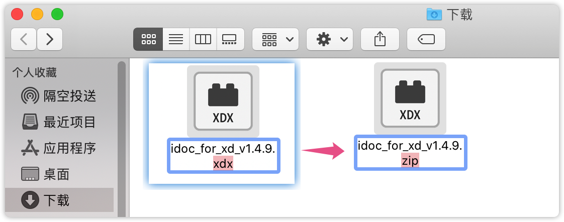 1. 在官网下载XD 正式版插件:https://www.mockplus.cn/download/idoc-xd,将下载的.xdx文件后缀修改为.zip格式,使用解压工具将文件解压到新建的文件夹中,新建的文件夹命名为“Mockplus for xd”。