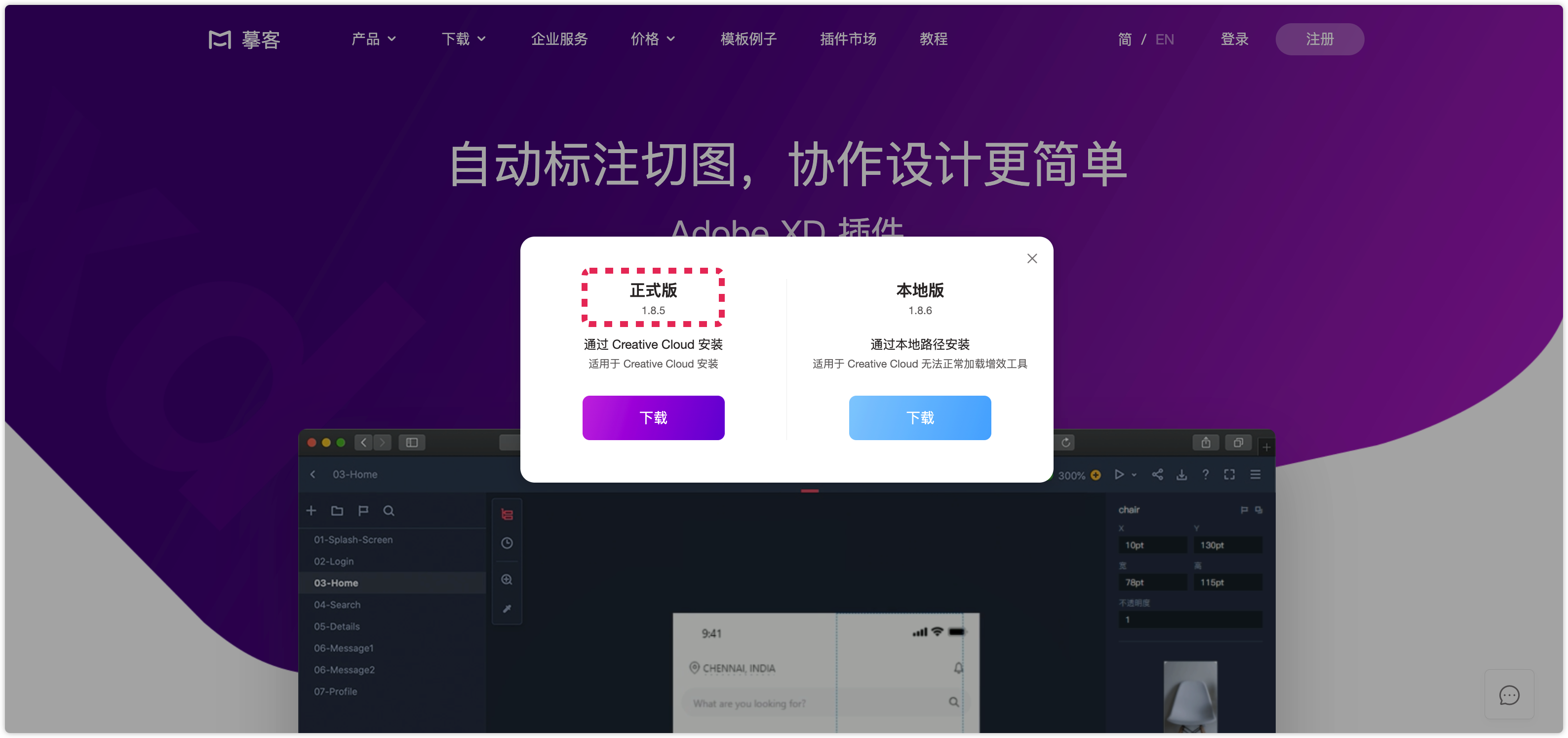 1. 在官网下载 XD 本地版插件,地址:https://www.mockplus.cn/download/idoc-xd;