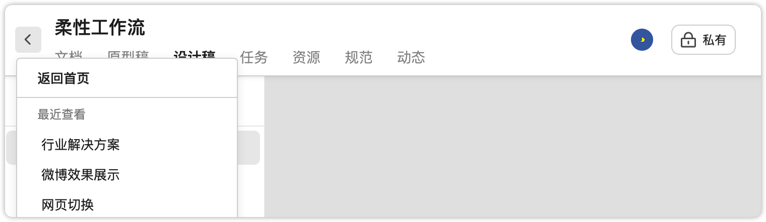 进入任意项目后,鼠标hover左上方的返回图标 ,可切换到最近查看的或当前项目集中的其它项目。