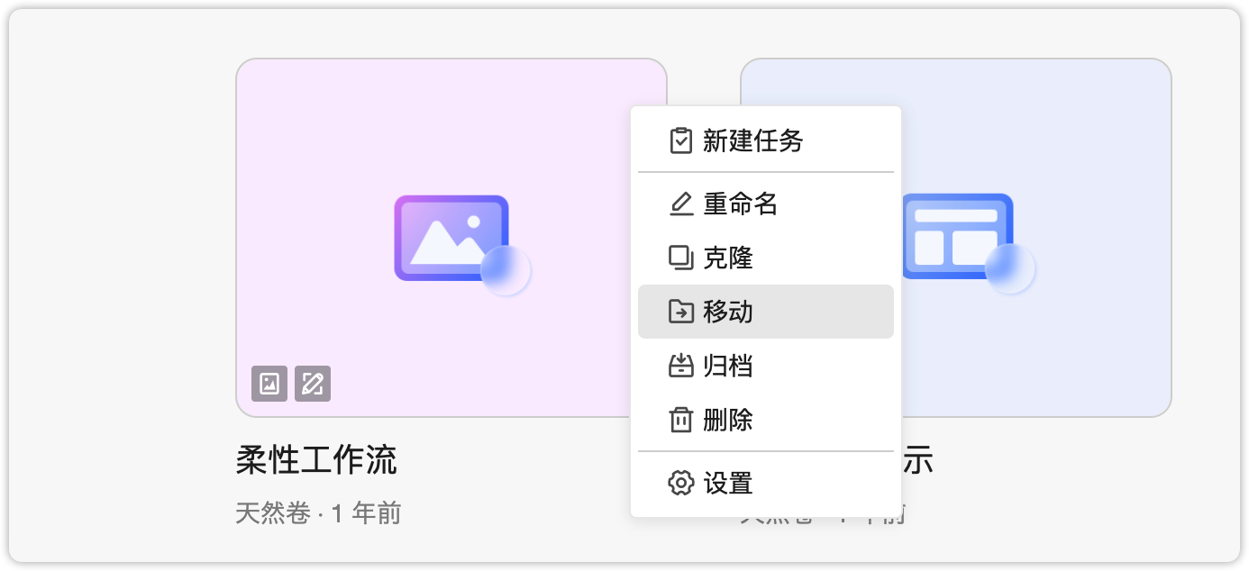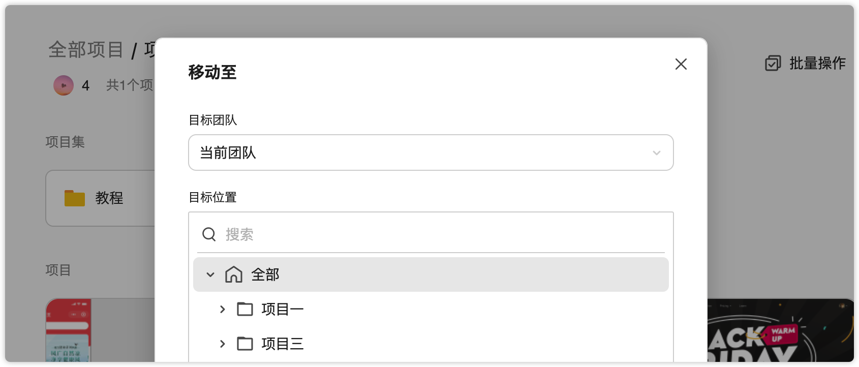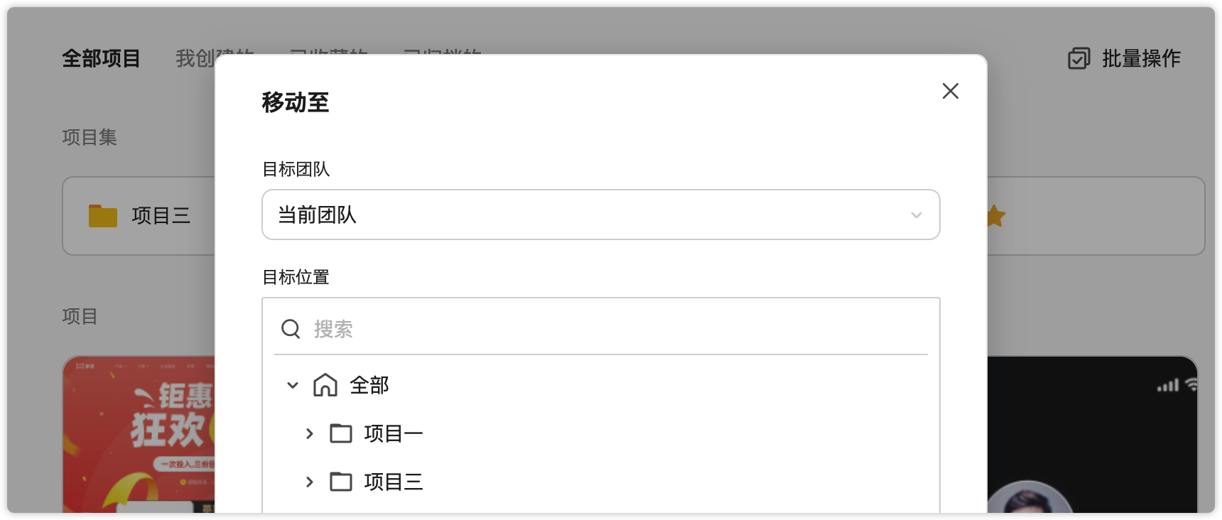 在任意项目封面右上角点击“更多”——“移动”,选择目标项目集,即可将该项目移动至项目集内。