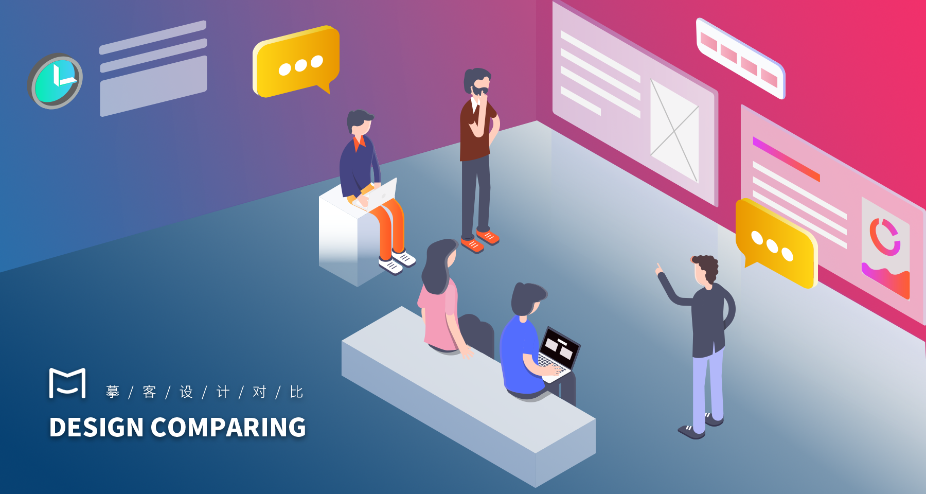 将两张不同版本的设计稿重叠在一起,通过调整参考线,显示两张设计稿的区别。这种方式适合进行色彩方面的对比,可以快速选出更加合适的颜色。