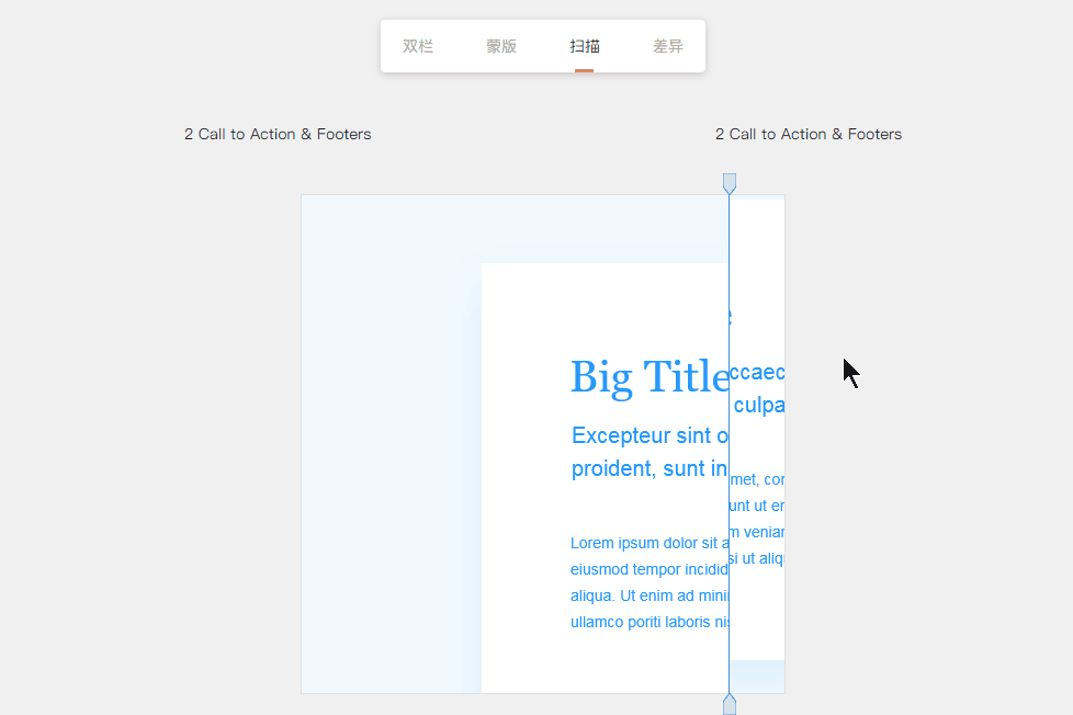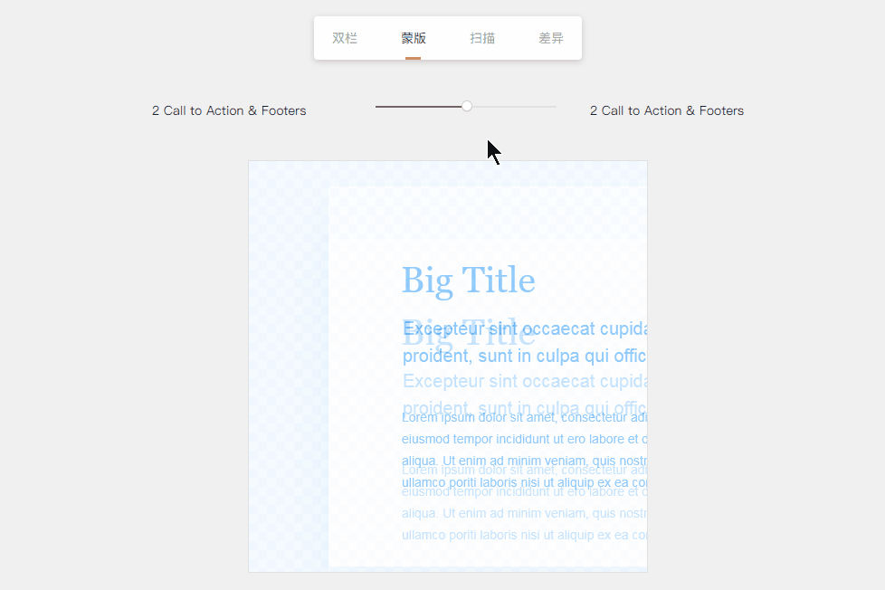 3、扫描:将设计稿重叠在一起,通过显示左侧和右侧的方式对比设计稿
