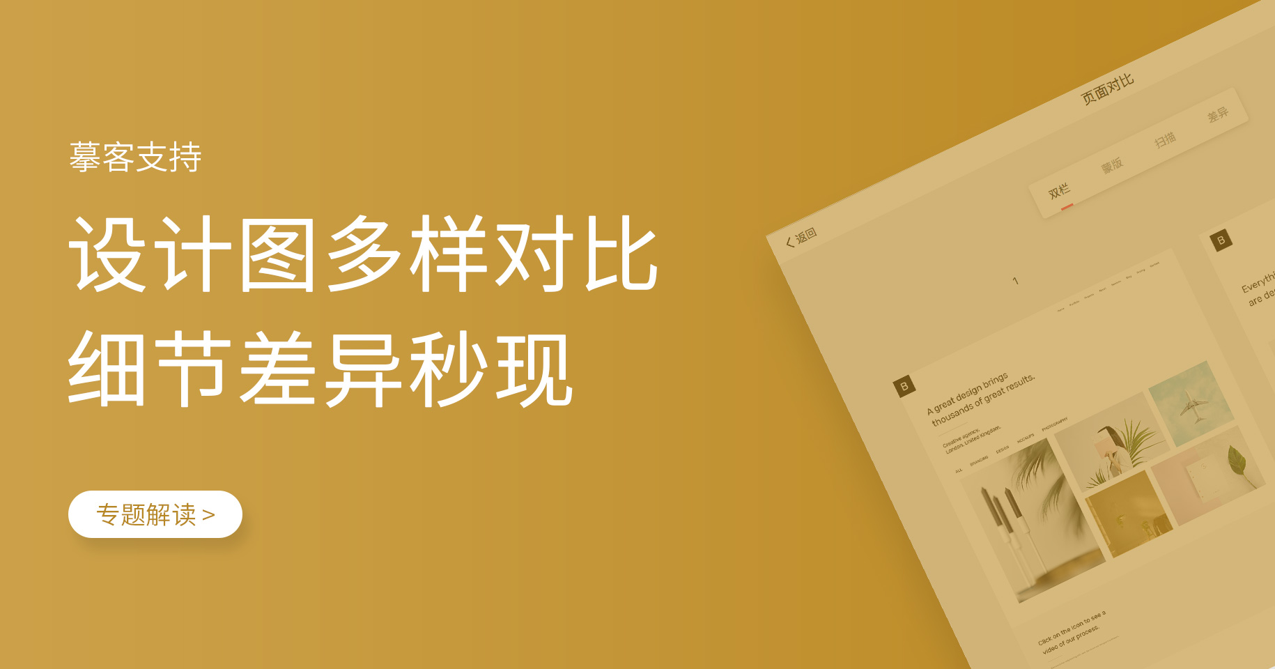 小摹之所以敢在这里大谈特谈设计师的痛点,那是因为摹客的开发小哥们已经找到了解决问题的办法了!现在起,摹客支持多种设计稿版本对比,高效管理,让细节差异秒现!