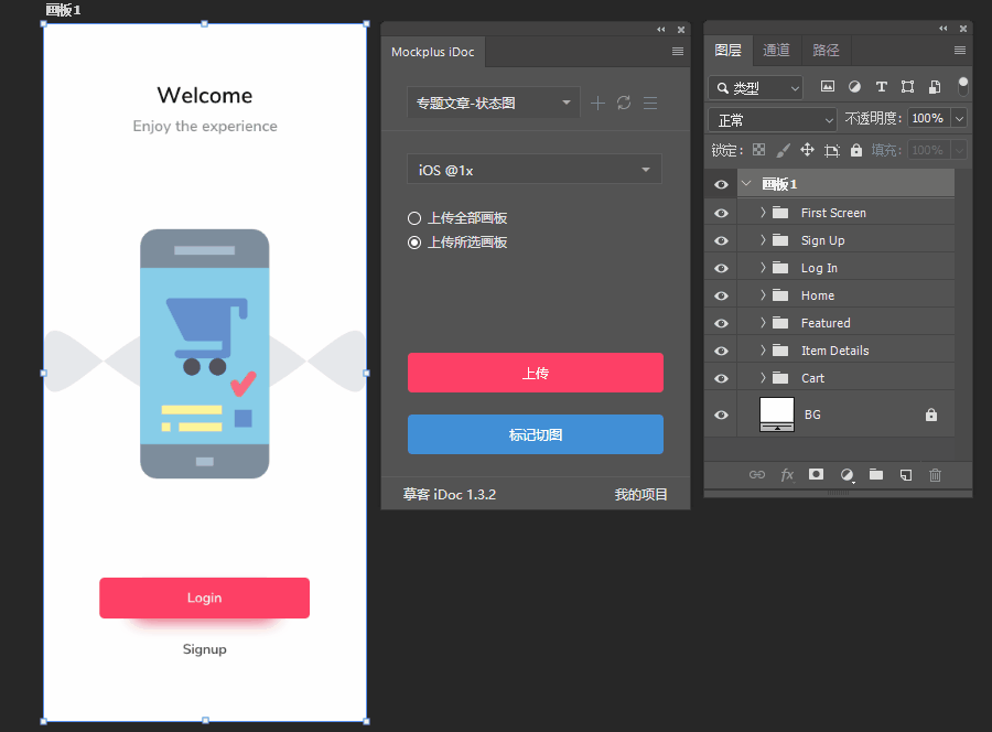 1、完成设计后,选中单个画板并勾选“上传所选画板”。点击“上传”按钮,完成首次画板状态的上传。