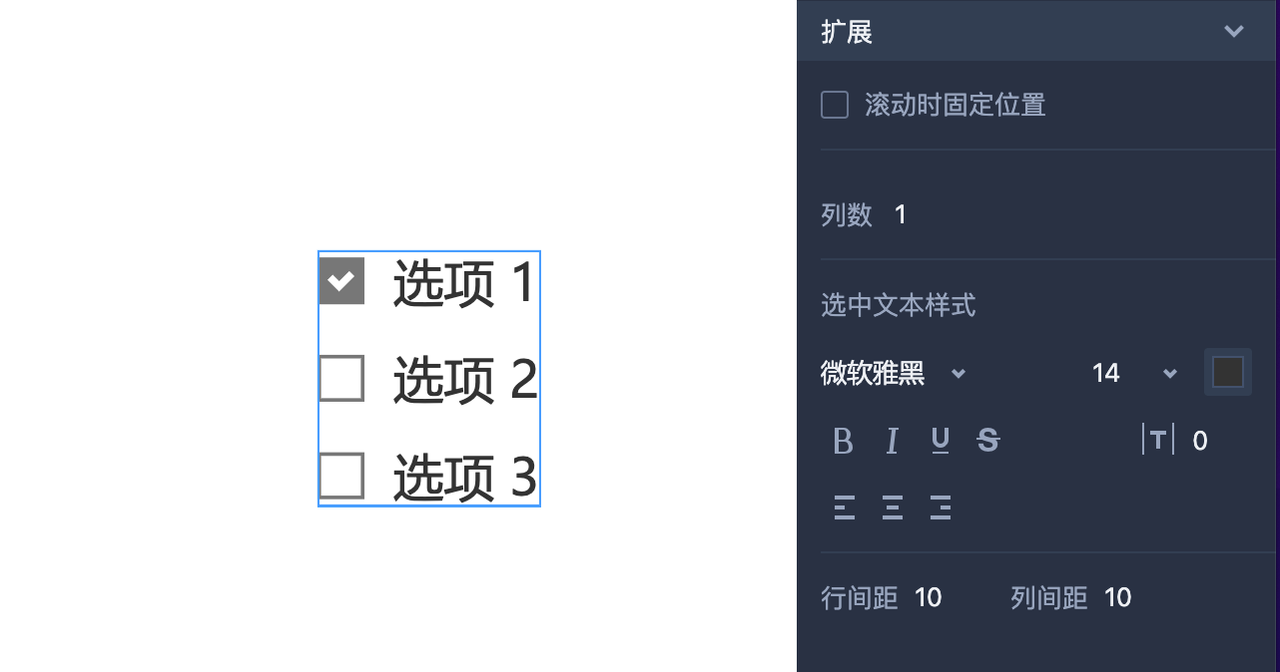 因不同元素的可配置属性不同,属性面板会根据的选中对象展示不同的属性。