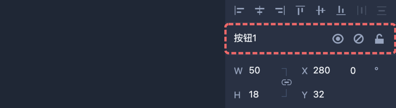 坐标与尺寸,“W”和“H”分别对应宽度和高度,“X”和“Y”则表示横纵坐标。中间的锁形按钮为锁定宽高比功能,开启后,只能对元素的宽高进行等比例的缩放。