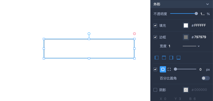 外形属性用于调整元素的风格样式,包含了透明度、填充、边框、宽度、圆角、百分比圆角、阴影。