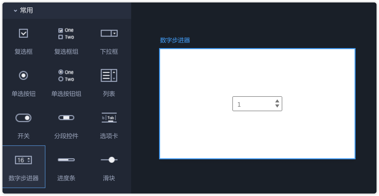 - 从左侧常用组件中拖出“数字步进器”,即可直接使用。