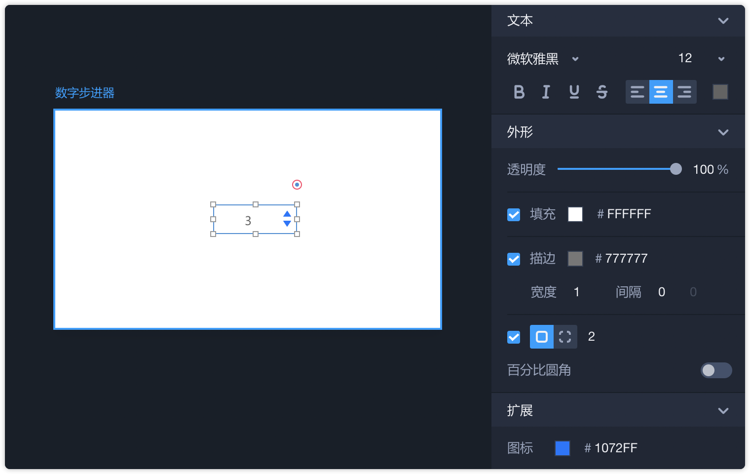 - 也可以在扩展-图标,设置数字步进器中两个三角的颜色。
