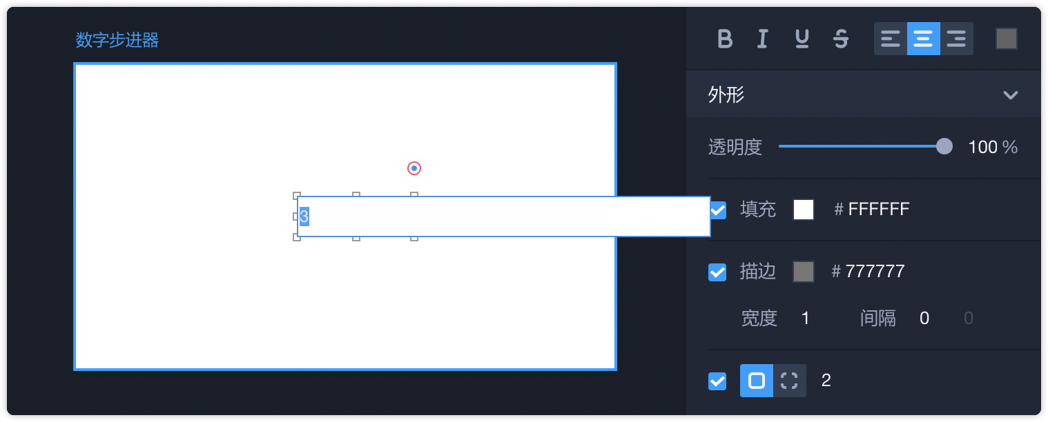 - 你可以对数字步进器大小随意拉伸,如果需要等比例调整大小,按住Shift再拖动鼠标。