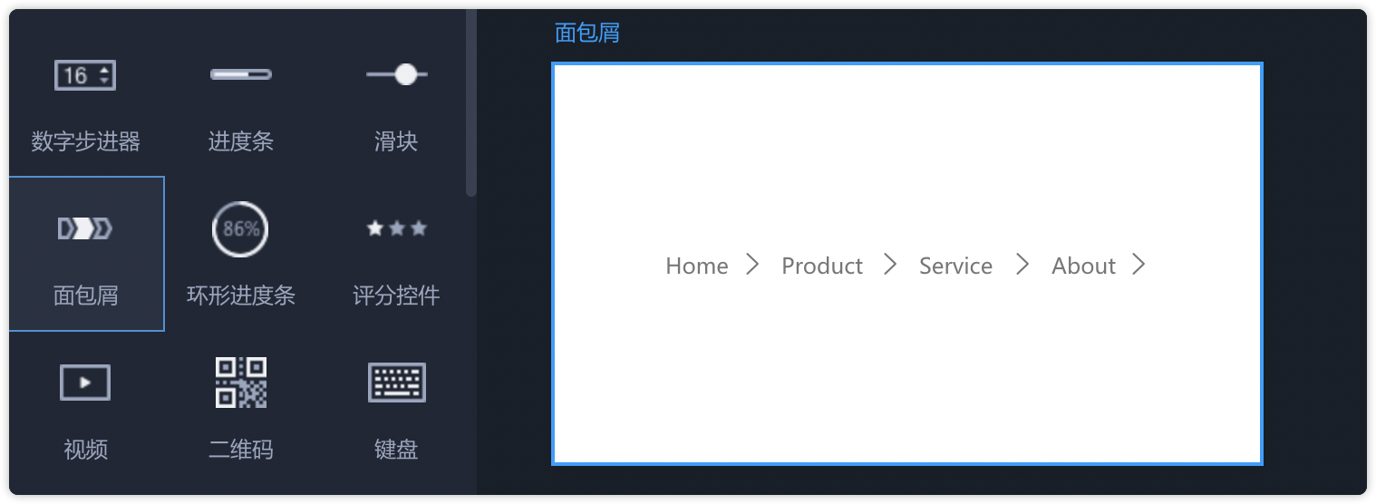 从左侧常用组件中拖出“面包屑”,即可直接使用。