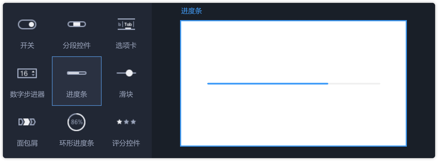 - 从左侧常用组件中拖出“进度条”,即可直接使用。