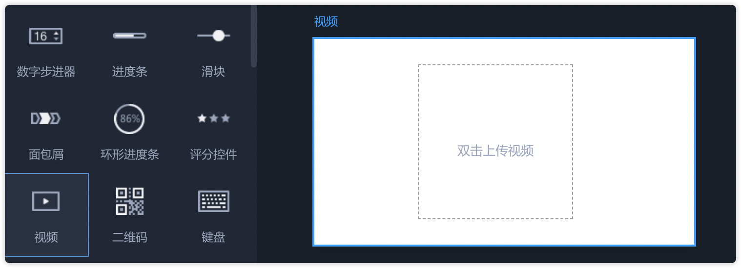 - 从左侧常用组件中拖出“视频”,即可直接使用。