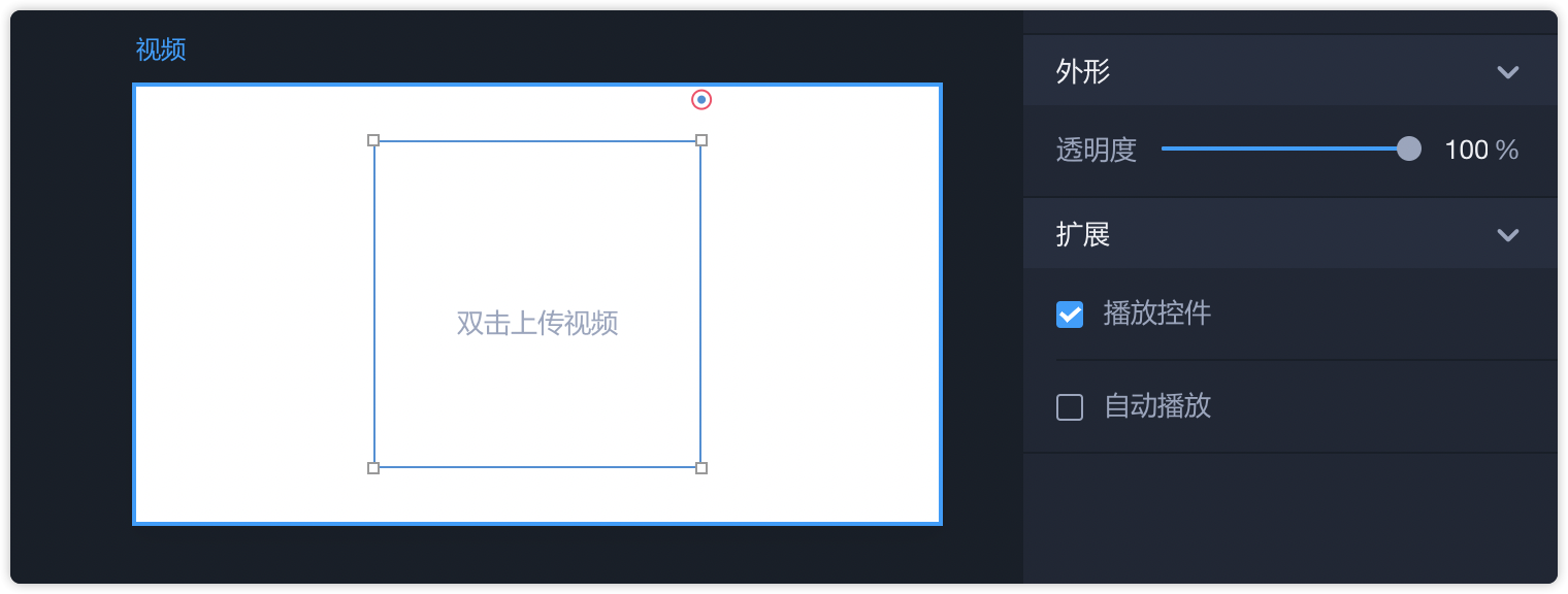 - 你可以对视频组件大小随意拉伸,默认等比例调整大小。