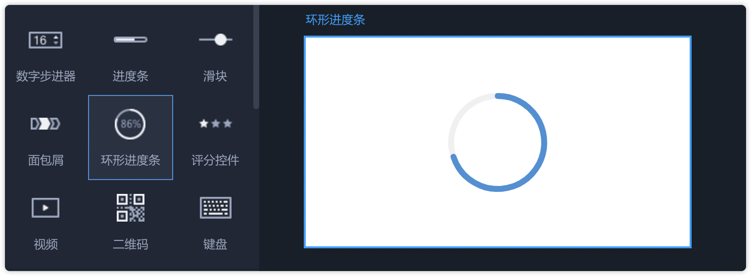 - 从左侧常用组件中拖出“环形进度条”,即可直接使用。