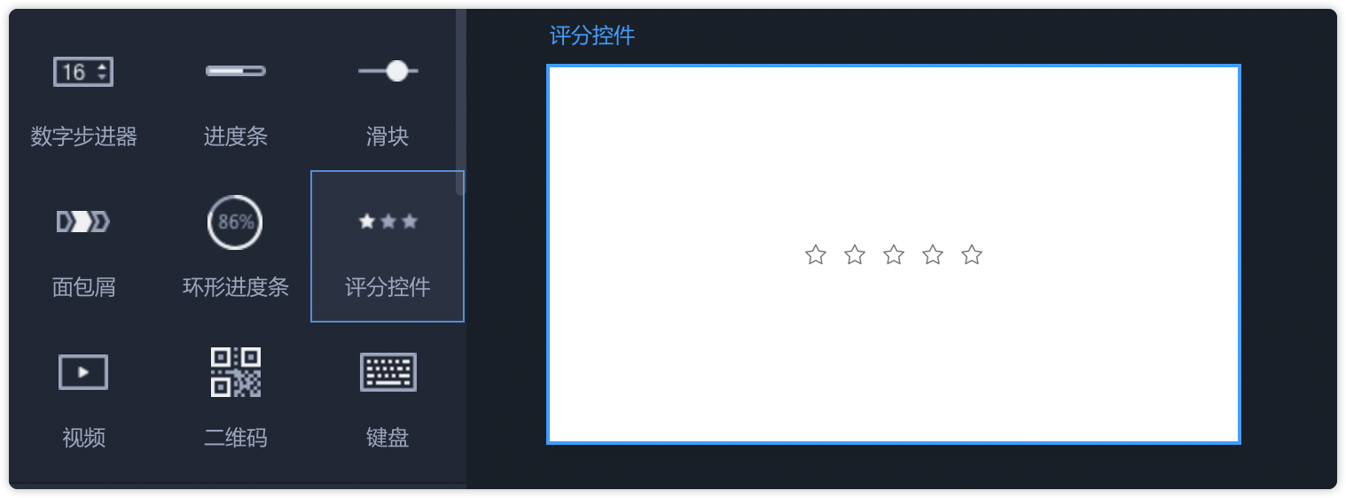 从左侧常用组件中拖出“评分控件”,即可直接使用。