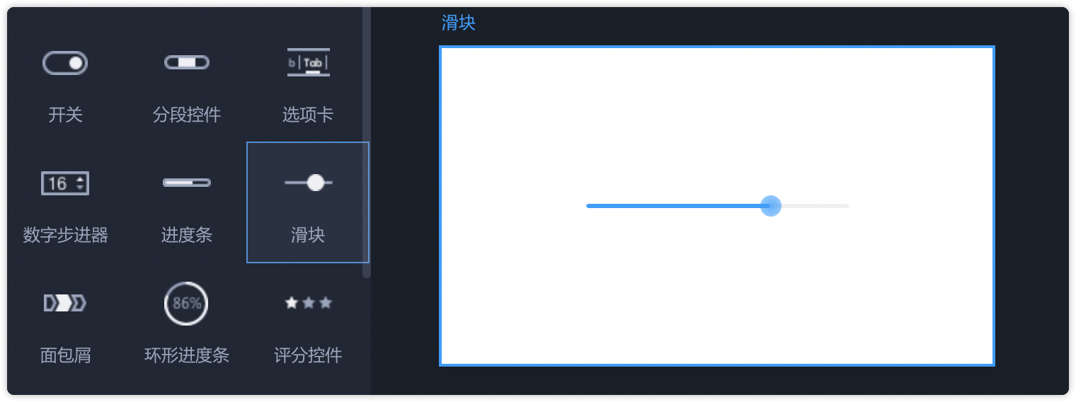 - 从左侧常用组件中拖出“滑块”,即可直接使用。