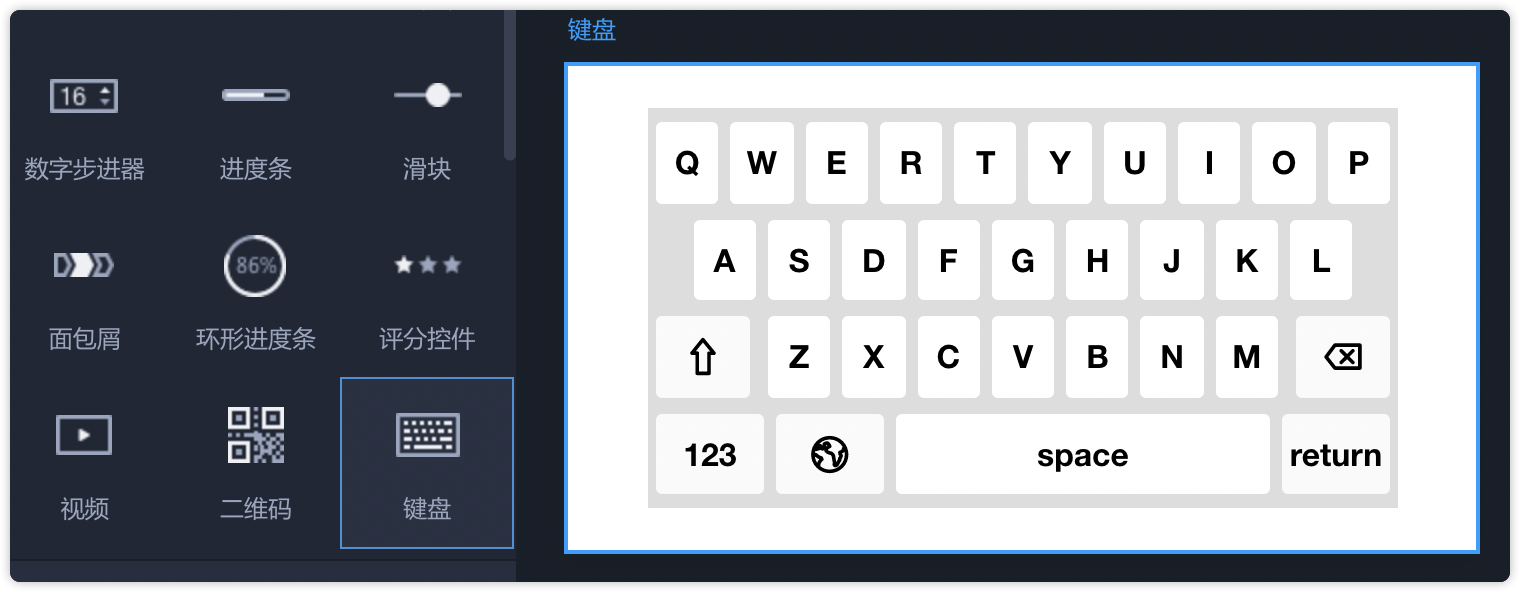 - 从左侧常用组件中拖出“键盘”,即可直接使用。