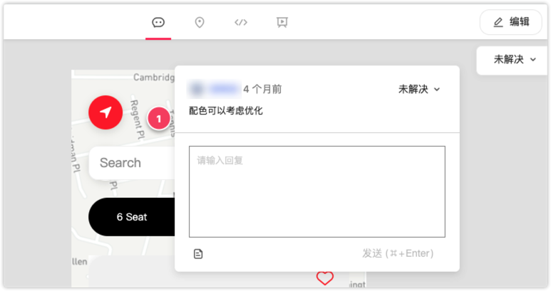 - 评论模式:评论模式中使用图钉评论传达需求、提出设计建议;
