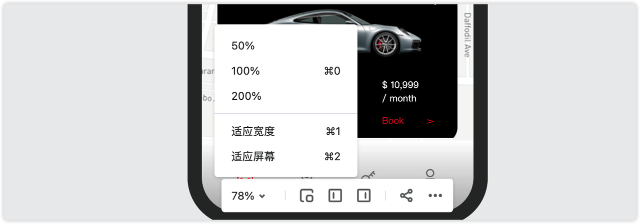 操作栏提供的按钮可以帮你更方便地进行演示。你可以在操作栏中随意调整画板缩放。也可以使用Ctrl+鼠标滚轮进行快速缩放。