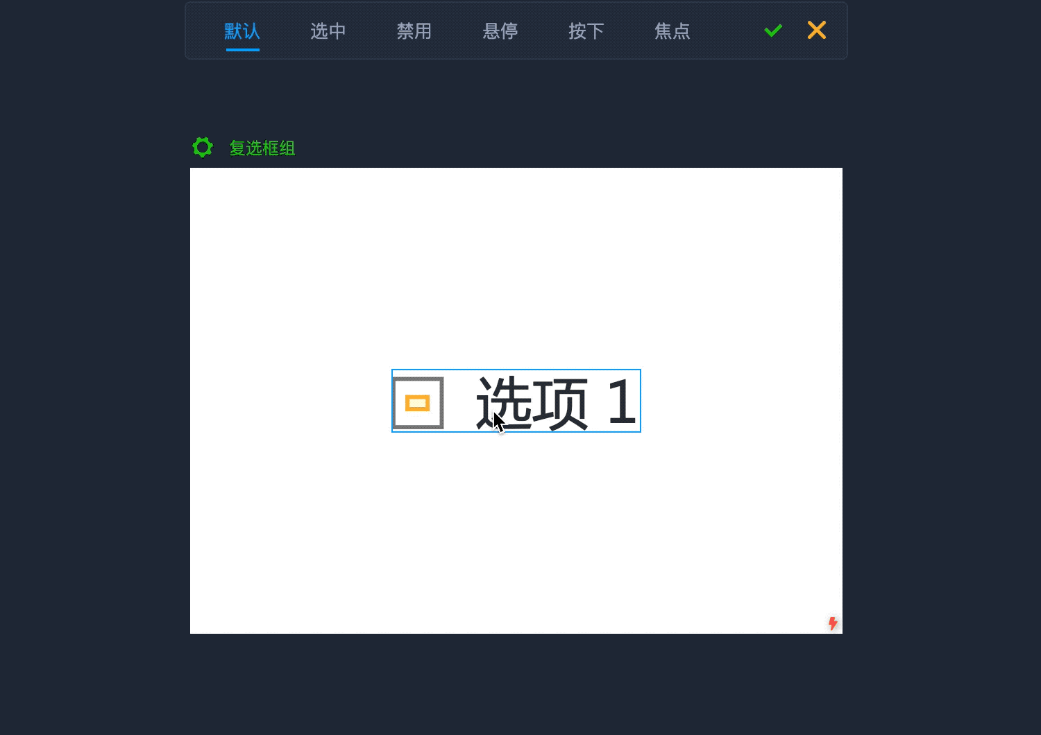 请注意:调整样式后,需要点击右上角的“√”才会将样式应用到组件上;点击“×”,则样式调整不会生效。
