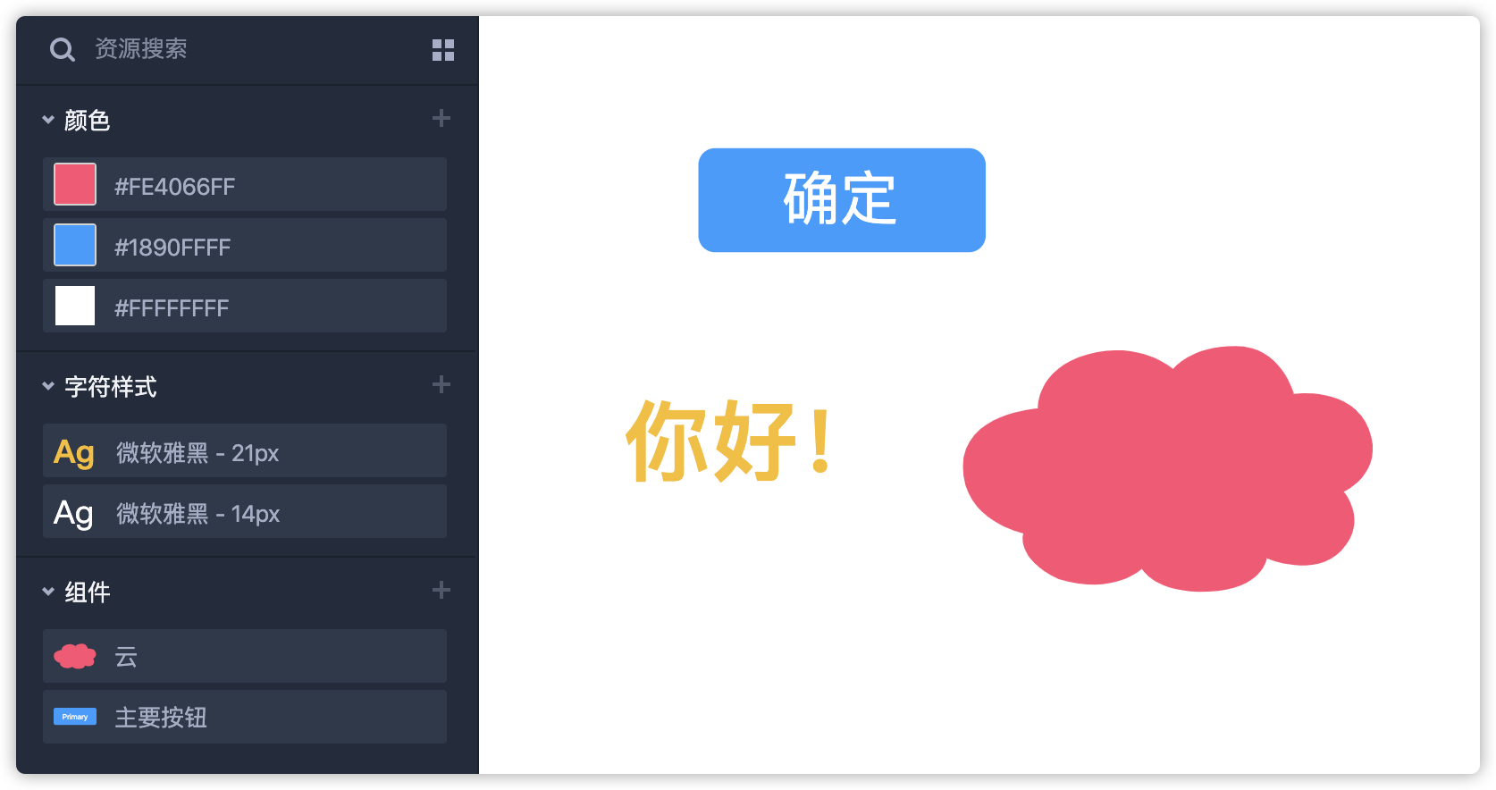 设计资源功能帮助你方便地收藏、管理、复用自己的设计偏好,包括颜色、字符样式、组件。