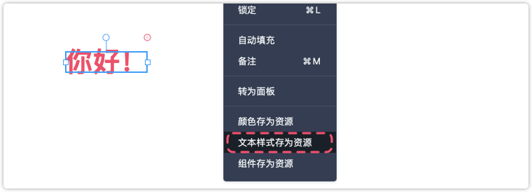 在组件的右键菜单中选择“字符样式存为资源 ”;或选中组件时,点击字符样式的“添加”按钮即可将组件的字符样式添加到设计资源。