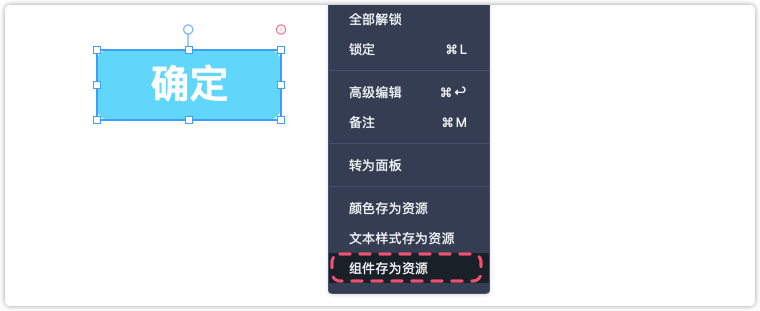 在组件的右键菜单中选择“组件存为资源 ”;或选中组件时,点击设计资源面板中组件的“添加”按钮即可将相应组件整体添加到设计资源。